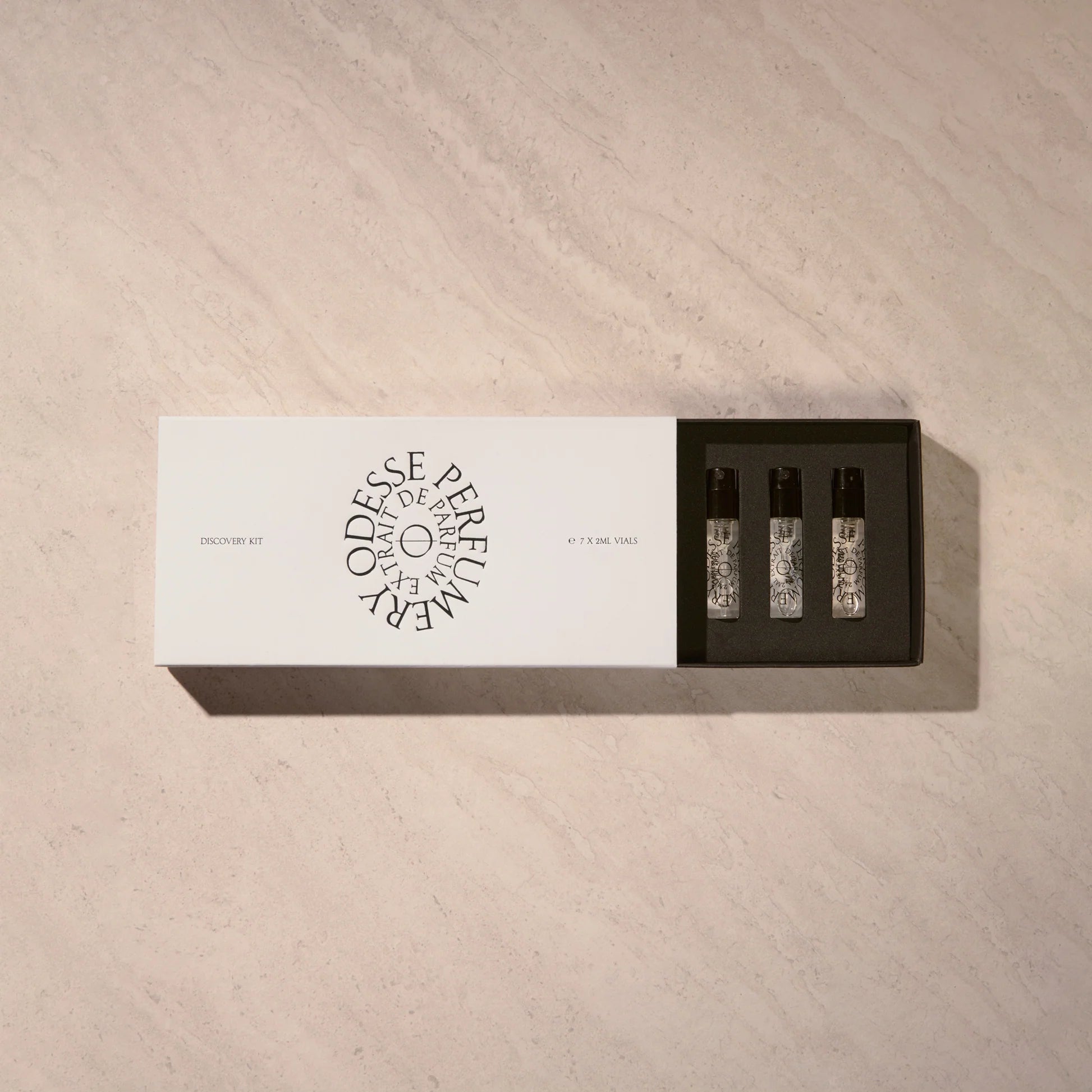 Discover your forever fragrance with the Odesse Discovery Kit. In this curated set you get to sample seven of our best selling Extrait de Parfums. Perfect for gifting, finding your new signature scent, or indulging in a new fragrance every day of the week. The Discovery Kit is a perfect introduction to the world of Odesse.
